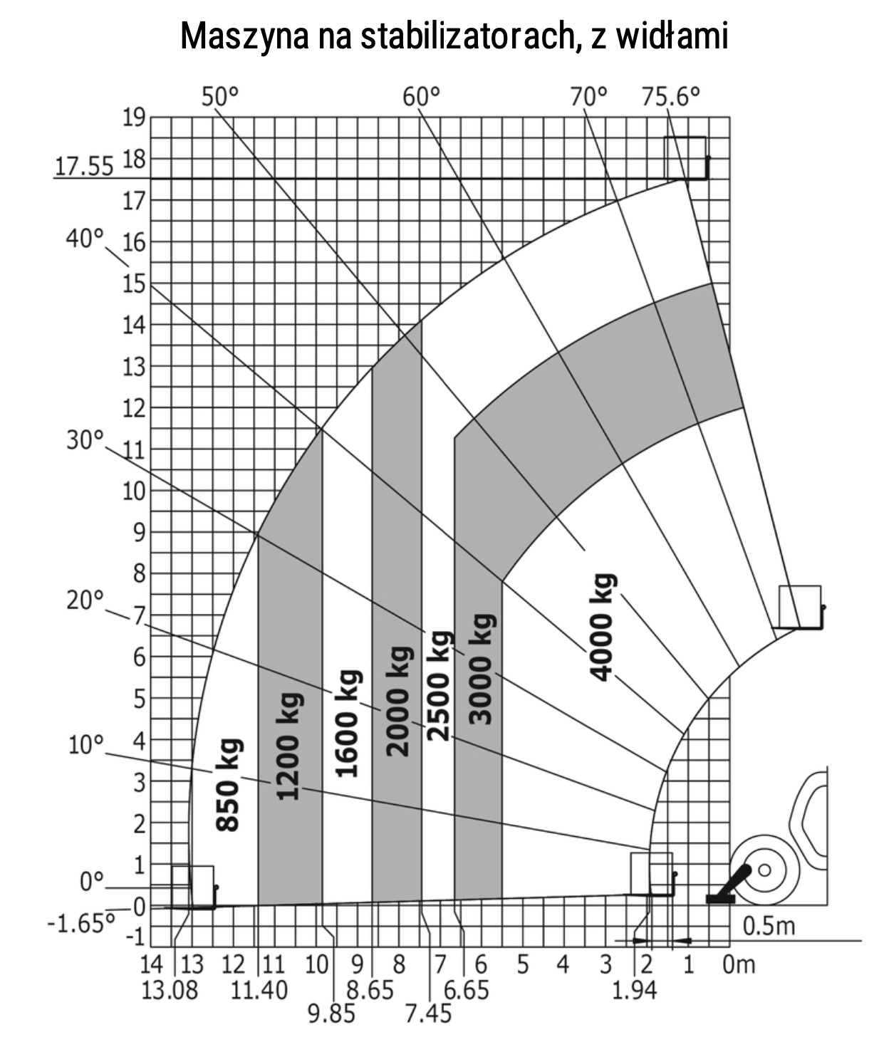- Wysięg max. 13.08 m
